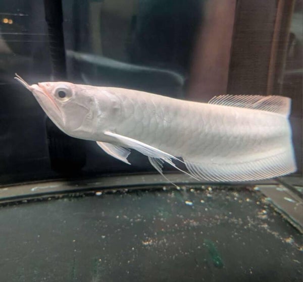 This is a true platinum silver arowana wild caught from columbia, it's snow white on its full body. It's not a regular albino arowana!!!